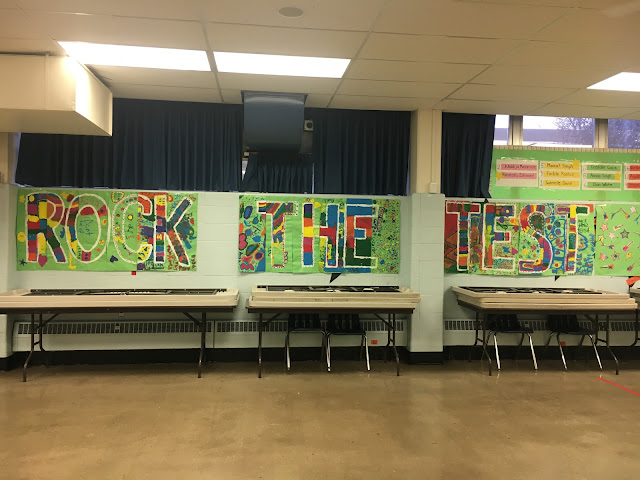 3rd graders worked in groups to paint different sections of our ROCK THE TEST poster for our PSSA assembly.